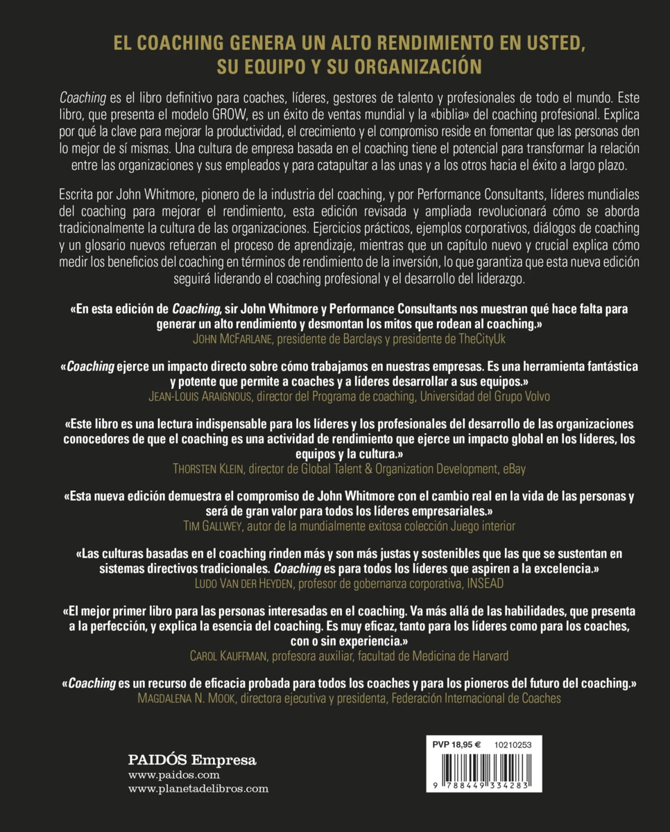 ¡Esta edición supone un libro nuevo! Performance Consultants, líderes mundiales del coaching, han actualizado el clásico de John Whitmore adaptándolo a nuestros tiempos.