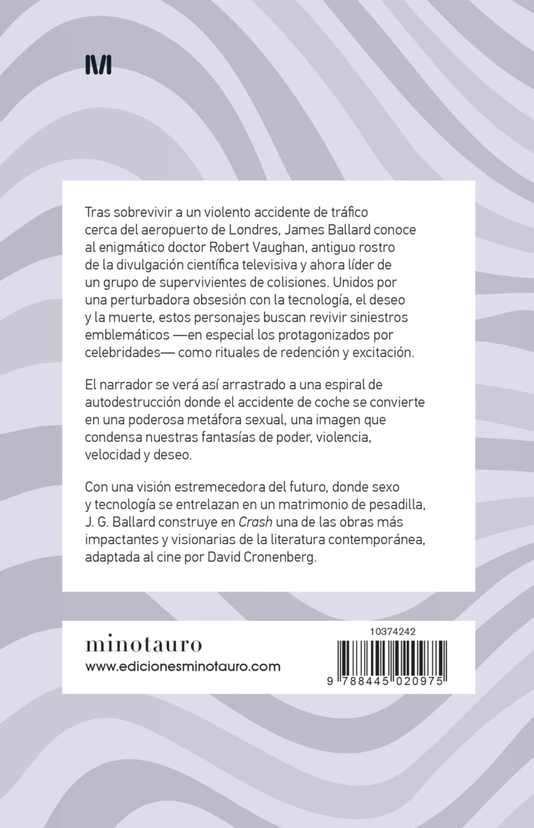 Tras sobrevivir a un violento accidente de tráfico cerca del aeropuerto de Londres, James Ballard conoce al enigmático doctor Robert Vaughan, antiguo rostro de la divulgación científica televisiva y ahora líder de un grupo de supervivientes de colisiones. Unidos por una perturbadora obsesión con la tecnología, el deseo y la muerte, estos...