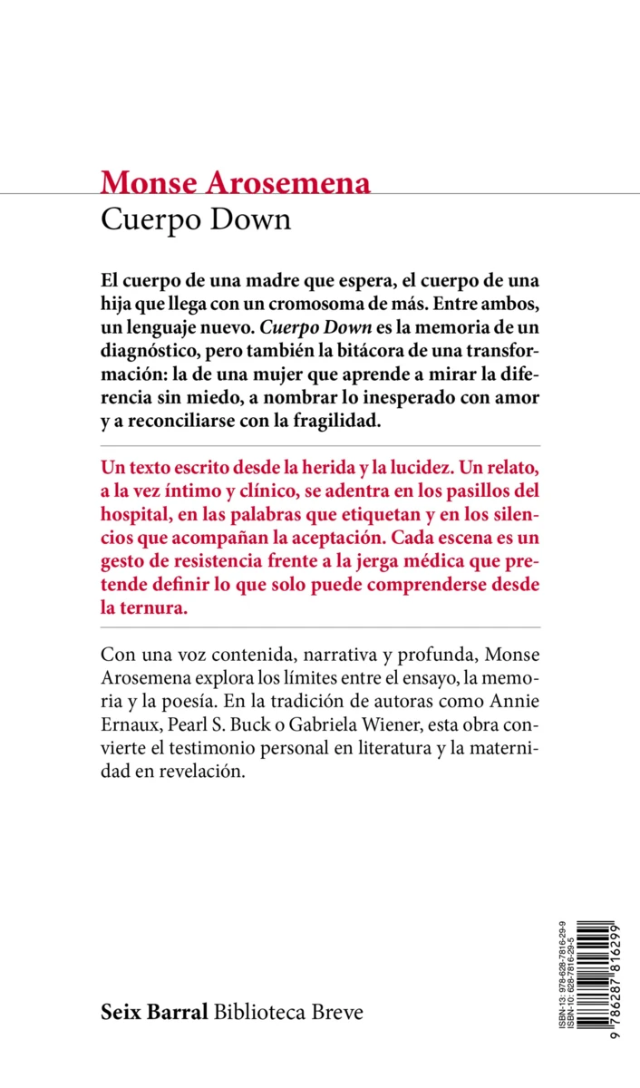 El cuerpo de una madre que espera, el cuerpo de una hija que llega con un cromosoma de más. Entre ambos, un lenguaje nuevo. Cuerpo Down es la memoria de un diagnóstico, pero también la bitácora de una transformación: la de una mujer que aprende a mirar la diferencia sin...
