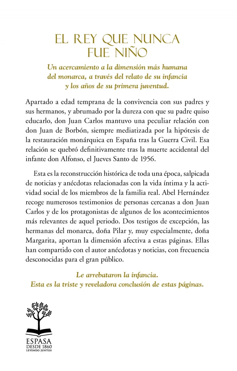 Un acercamiento a la dimensión más humana del monarca, a través del relato de su infancia y los años de su primera juventud. Le arrebataron la infancia. Esta es la triste y reveladora conclusión de estas páginas.