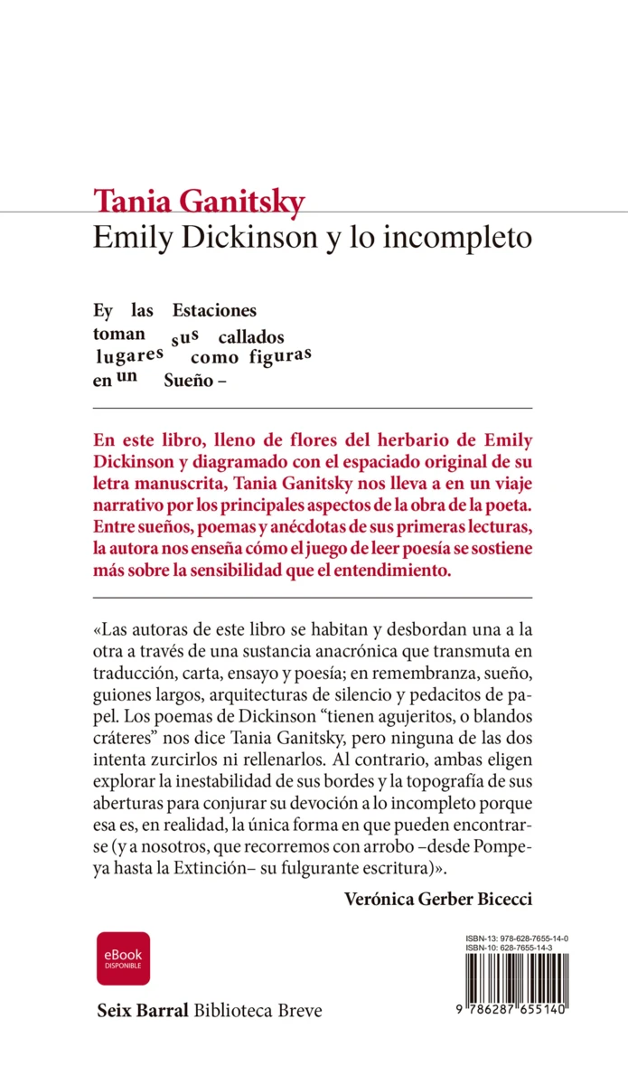 En este libro, lleno de flores del herbario de Emily Dickinson y diagramado con el espaciado original de su letra manuscrita, Tania Ganitsky nos lleva a en un viaje narrativo por los principales aspectos de la obra de la poeta. Entre sueños, poemas y anécdotas de sus primeras lecturas, la autora nos enseña cómo el...