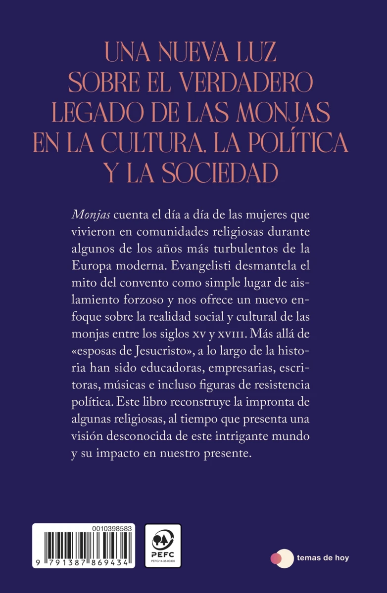 Monjas cuenta el día a día de las mujeres que vivieron en comunidades religiosas durante algunos de los años más turbulentos de la Europa moderna. Evangelisti desmantela el mito del convento como simple lugar de aislamiento forzoso y nos ofrece un nuevo enfoque sobre la realidad social y cultural...