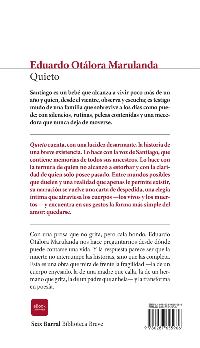 Santiago es un bebé que alcanza a vivir poco más de un año y quien, desde el vientre, observa y escucha; es testigo mudo de una familia que sobrevive a los días como puede: con silencios, rutinas, peleas contenidas y una mecedora que nunca deja de...