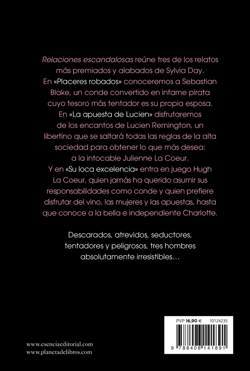 Relaciones escandalosas reúne tres de los relatos más premiados y alabados de Sylvia Day.