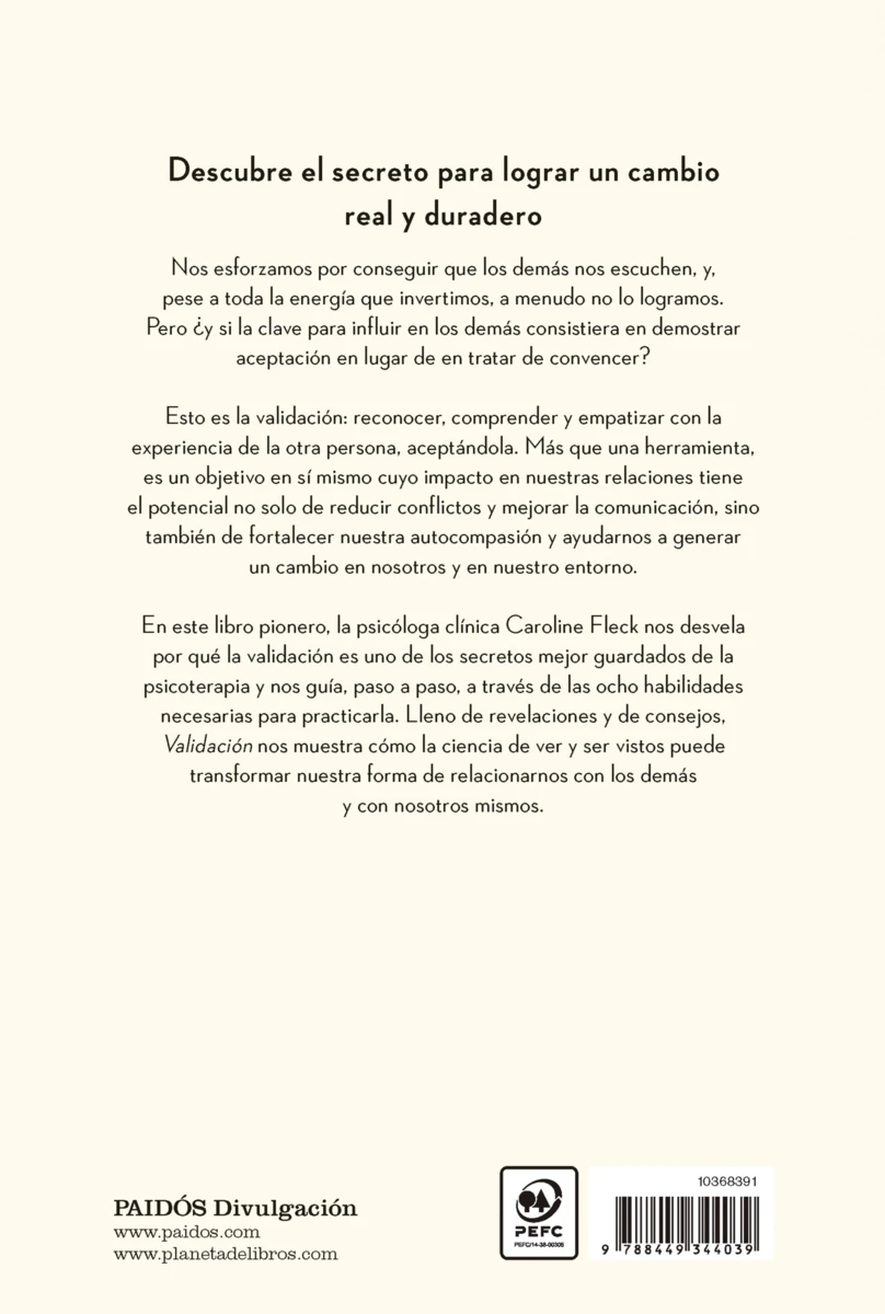 Las habilidades de validación de la terapia dialéctica conductual (TDC) revolucionaron la psicología: conseguía un cambio de comportamiento a través de la aceptación. Ahora, Fleck extrae estas habilidades de su consulta y las lleva a la vida cotidiana para ayudarnos a a disminuir los conflictos, a fortalecer nuestras relaciones y a cambiar nuestros comportamientos y los de los demás.